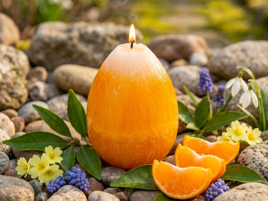 Velikonoční svíčka ve tvaru vajíčka - krystalická krása s vůní mandarinky