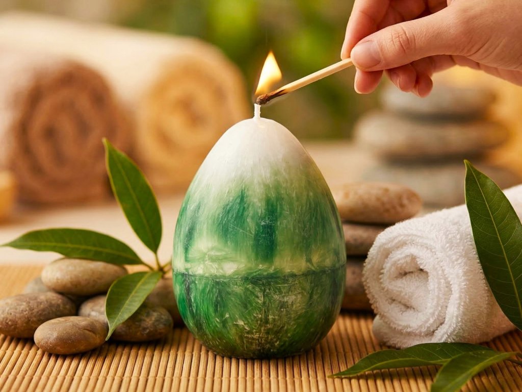 Velikonoční svíčka ve tvaru vajíčka - krystalická krása s vůní manga