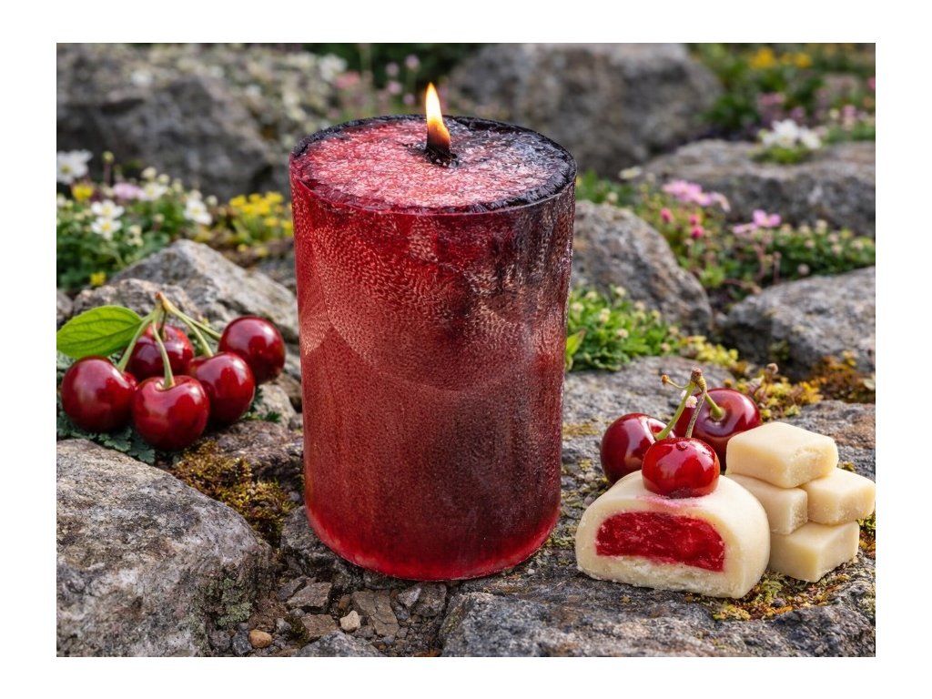 Tato unikátní ručně vyráběná svíčka s dřevěným knotem a vůní višní a marcipánu na první pohled zaujme svým netradičním zabarvením i krystalickou strukturou. Dřevěný knot je v současné době velmi oblíbenou novinkou ve světě svíček. Při hoření vydává jemné zvuky připomínající praskání ohně v krbu a navozuje tak pohodovou atmosféru. Osvěžte svůj domov jedinečným designovým prvkem z naší domácí dílny a dodejte Vašemu interiéru novou jiskru! Každou svíčku pro Vás ručně balíme do celofánového dárkového balení, hledáte-li tedy originální dárek pro Vaše blízké, je pro Vás tato svíčka ideální volbou.