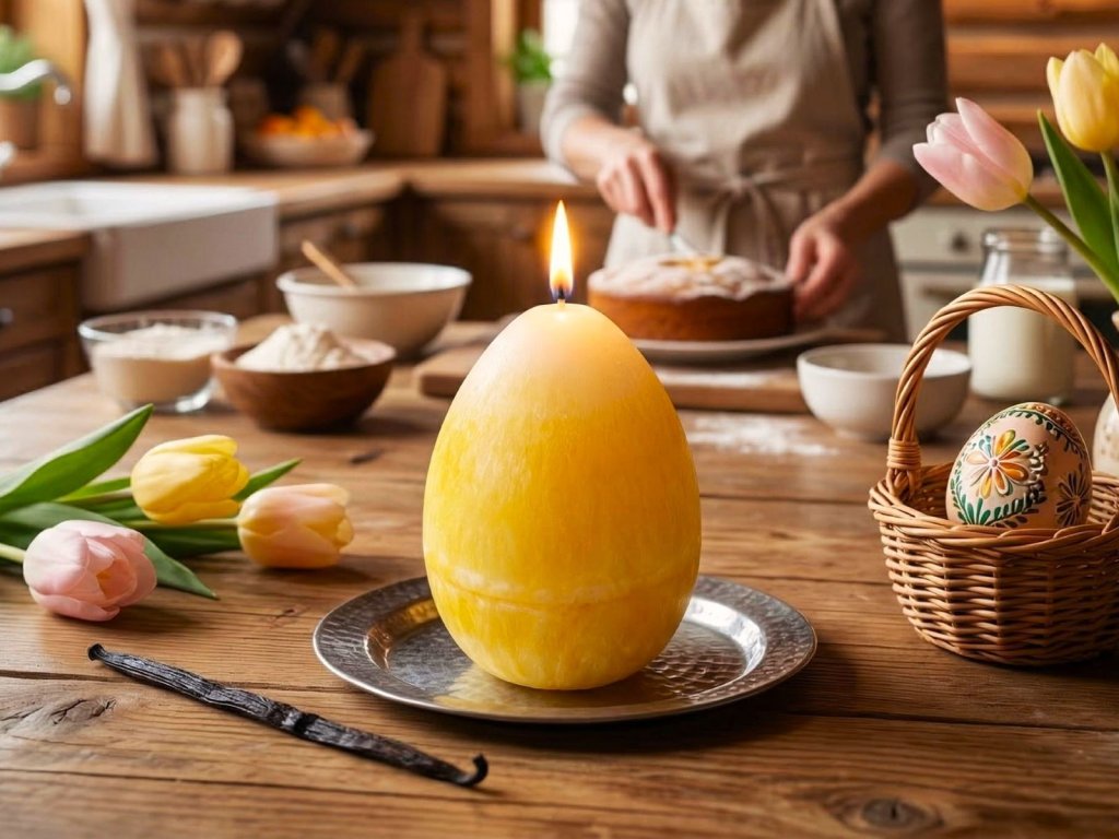 Velikonoční svíčka ve tvaru vajíčka - krystalická krása s vůní vanilky